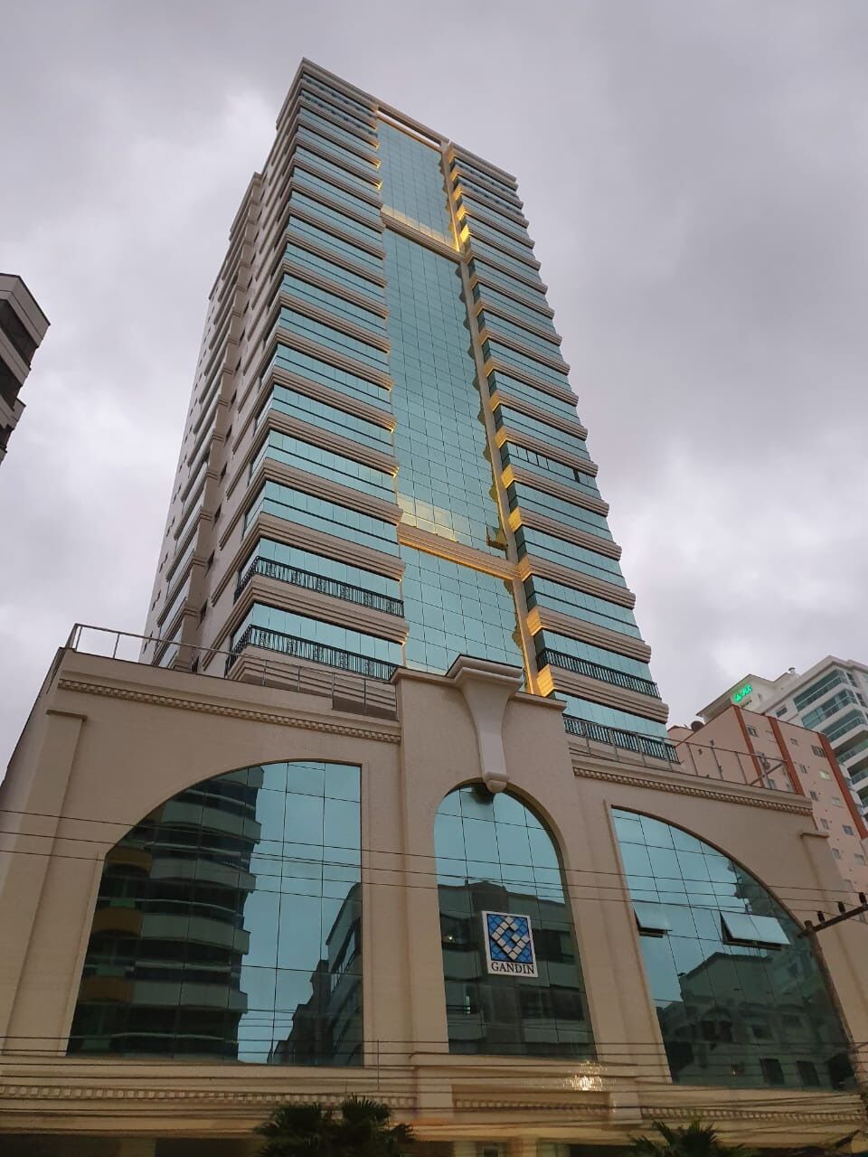 Sacada com fechamento em sistema de envidraçamento panorâmico